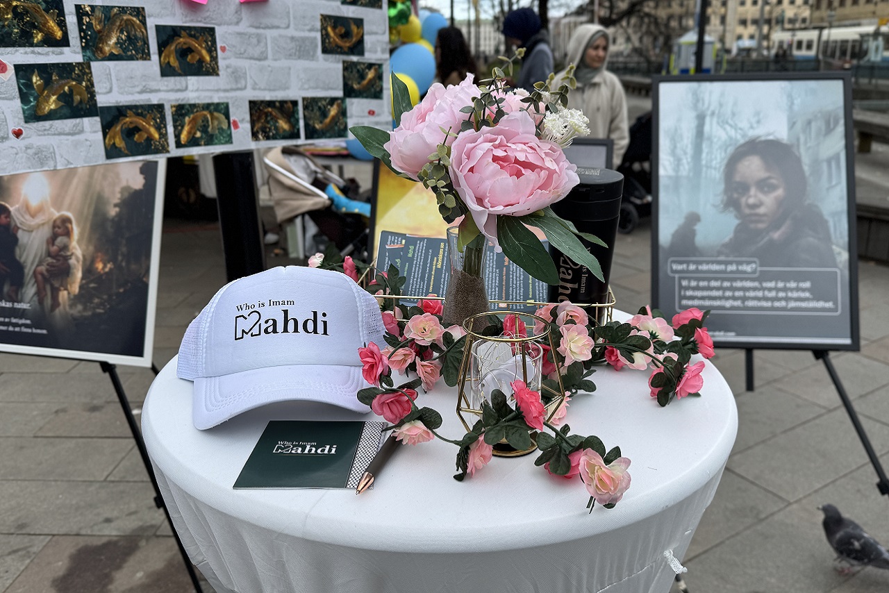 Today, April 11th, Saturday, we are present in the city center of Gothenburg, in front of the Nordstan shopping center. At this gathering, by holding an exhibition titled “Who is Imam Mahdi?”, we aim to introduce people to the savior of the End Times.